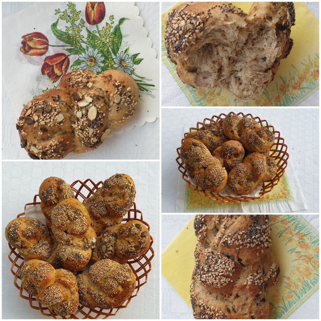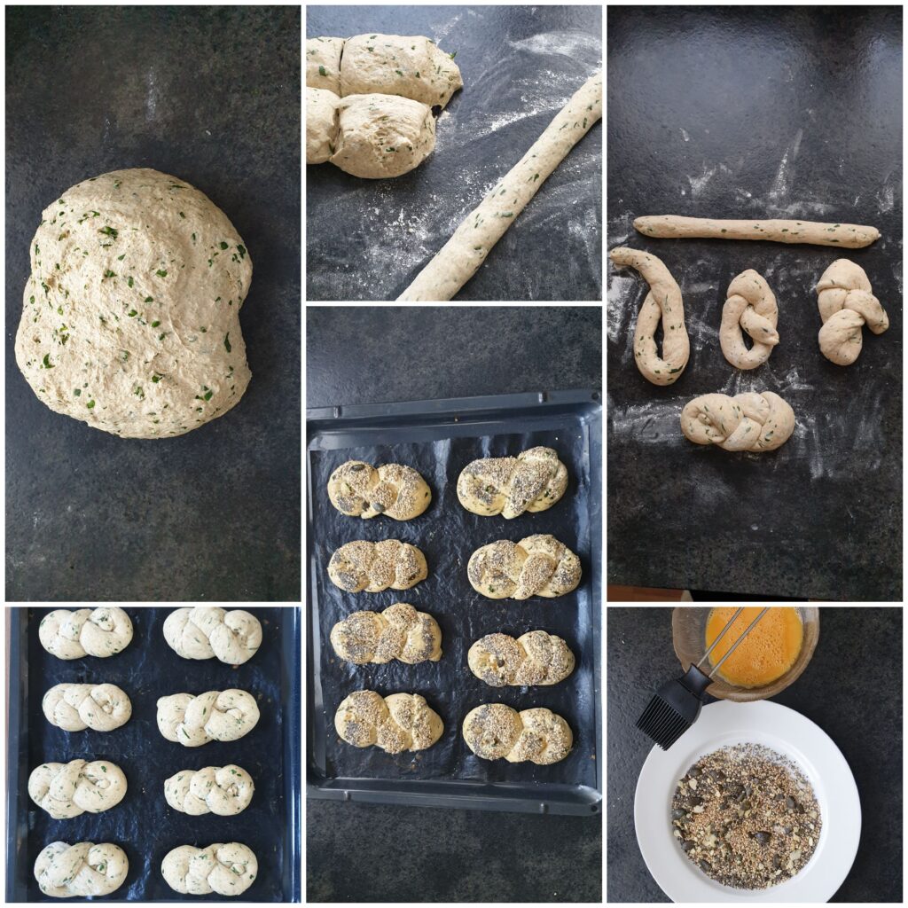 mit Ei bestreichen, mit Körner (nach Wunsch) bestreuen